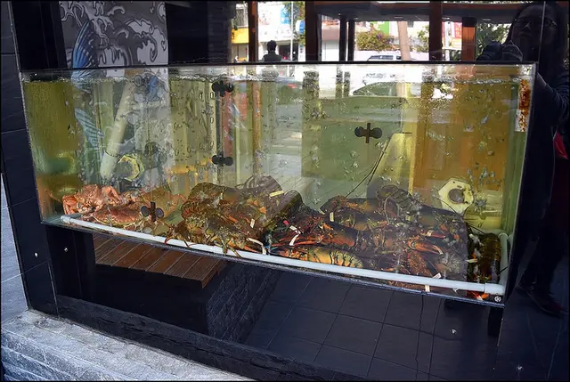 店面擴大後設置大型水族箱,波士頓龍蝦、麵包蟹、毛蟹通通是現點現撈的新鮮貨