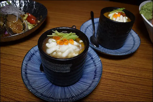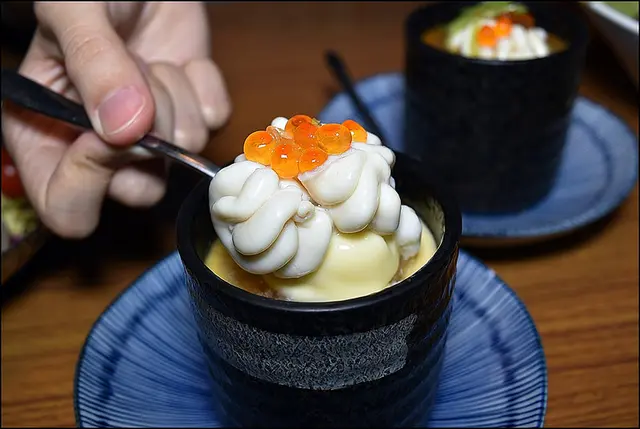 蒸蛋味道比較甜,搭配鮮甜鱈魚白子與鹹味鮭魚卵,鹹與甜的組合有漸層享受