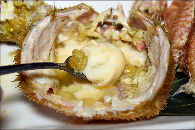 與蟹膏一起吃,海味十足(味道很鹹XD)