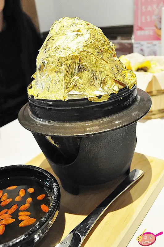 正因為金箔的味道不重不顯,所以店家特別選用了奶雪冰(雪花冰)來陪襯不搶戲