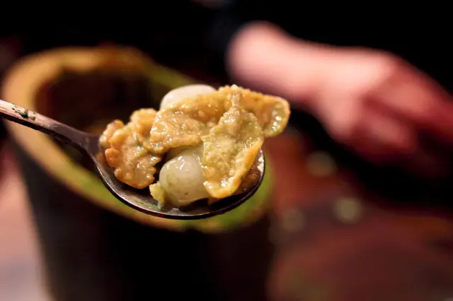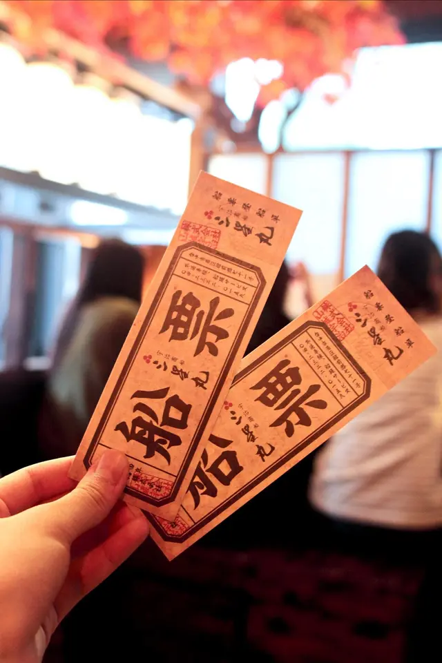 日本來的百年老店, 整間餐廳裝潢是木船,船頭都伸到餐廳岀門,入餐廳(登船前)前要先買船票!