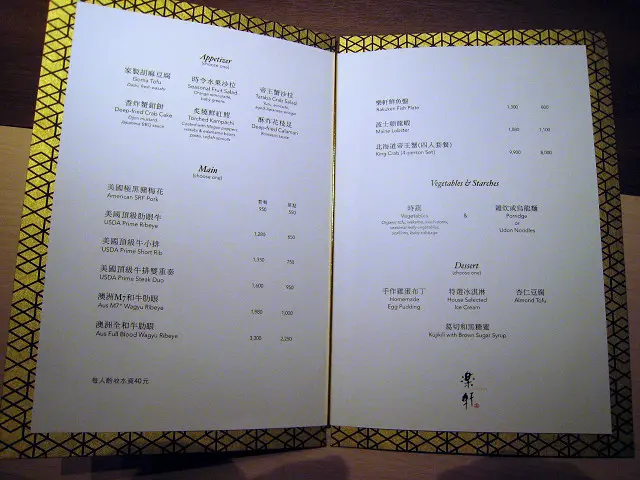 前菜有六種選擇,MENU上排三道是冷盤、下排三道是熱食