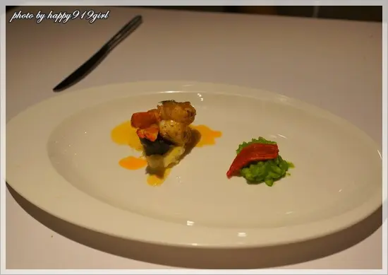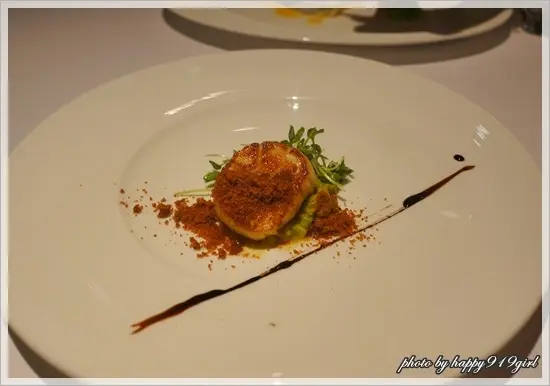 搭配綠色酪梨醬的鐵板煎鮮干貝,簡單的烹調更能吃出干貝的鮮甜
