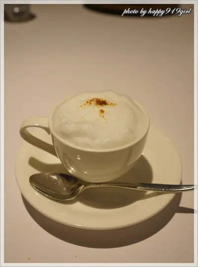 咦..怎麼才吃完開胃菜就上飲料?!原來這杯是我剛點的牛肝菌卡布其諾