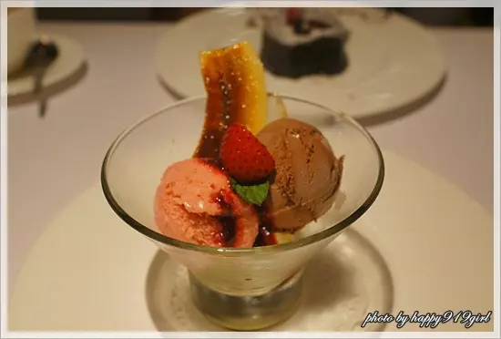 以焦糖香蕉作點綴的冰淇淋 可一次吃到三種不同口味,雖然普通卻贏得老公大心