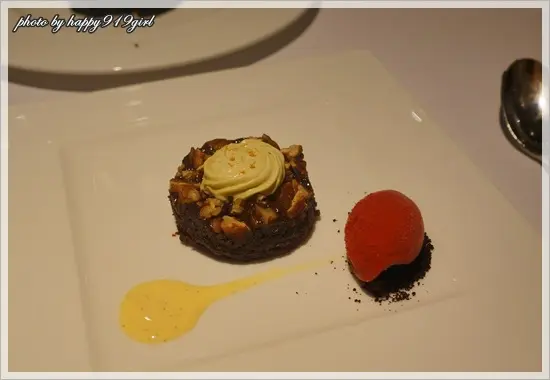 核桃塔 佐覆盆子冰淇淋,看起來頗可口但我肚子已經裝不下了! = ="