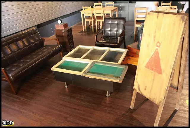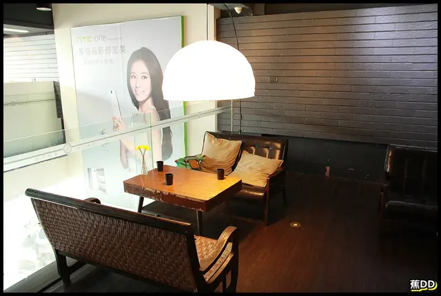 今天特地找了林心如來一起用餐(大誤),這個吊燈式的沙發區,除了噗爸頭常常會撞到燈之外的小缺點,皮沙發與竹編椅都很舒適