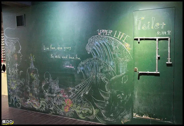 Upper Life廁所邊有一幅手繪牆,簡單的表達慢活且不拘束的意思,廁所門也很隱密,一切都是低調再低調