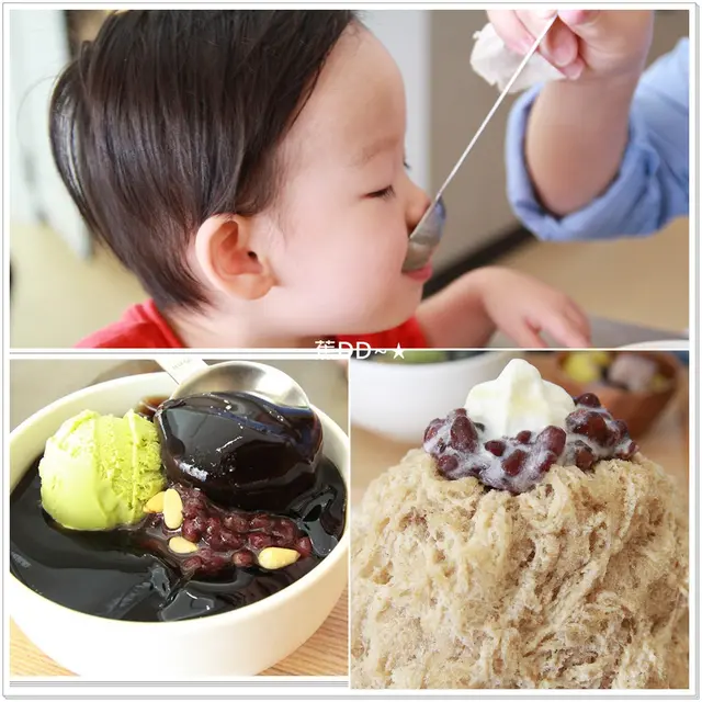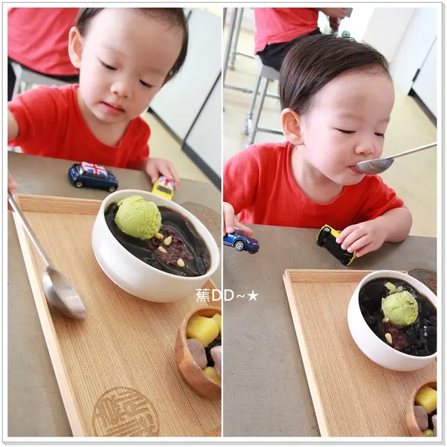 愛吃仙草冰的噗媽選擇『明治抹茶嫩仙草盛盤』,這個仙草的口感完全顛覆噗媽從小到大的仙草口感,仙草非常的軟嫩且入口即化(口感比較是糊狀而非凍狀),剛入口的時候覺得帶點微甜外還吃的到一點點的苦味,但是很快的又會回甘(這跟以前吃過的仙草很不一樣!),被朋友稱為螞蟻的噗媽覺得甜度不太夠,但搭配抹茶冰及紅豆的甜味綜合後就很清涼爽口了。