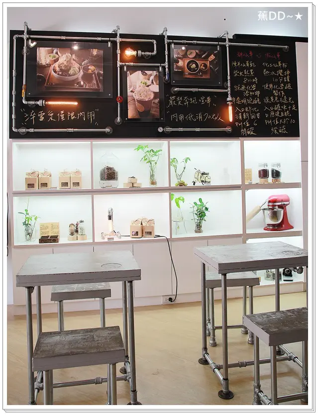 搬家後的『神仙草』,裝潢與之前逢甲店整體風格大轉換,除了添加些工業風的裝飾,連主要的用餐方式也一改逢甲店的外帶模式,改為主推店內用餐的方式,加上店內空間明亮乾淨,特別的水泥桌椅,搭配優閒的輕音樂(雖然有一個很吵的阿噗),讓噗一家整個享用甜點的過程,非常放鬆及開心。