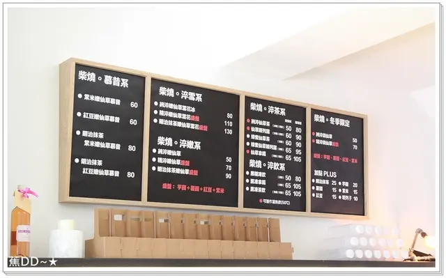 『神仙草』菜單分為慕昔(沒體驗到,應該是奶昔類)、冰品類、飲料類及冬季限定的熱品類,除了淬雪系是無法提供外帶,且主要的品項都無法做冰塊及甜度的調整喔,可能太習慣喝外帶飲料杯的朋友要習慣一下唷(噗爸的最愛:老闆~多綠少冰正)。