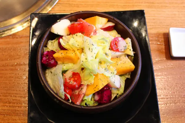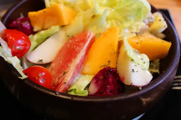 每次的沙拉都會推陳出新 根據當季的水果下去搭配 這次就有很甜的芒果 酸酸的葡萄柚 甜甜的火龍果 嬌貴的甜梨 蘋果和番茄 搭配百香果醬下去做的沙拉 滿滿一大盆的讓人停不下口
