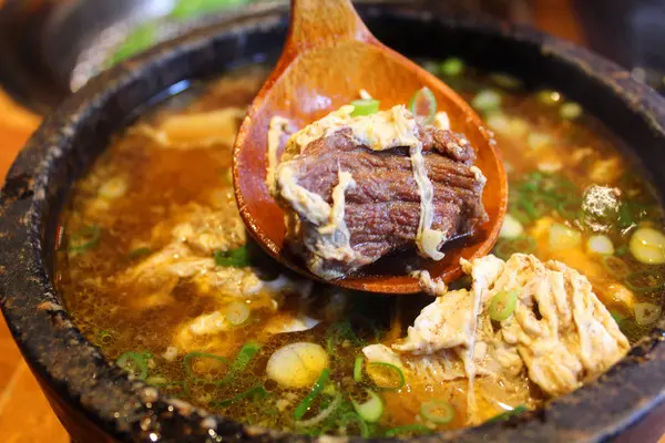 燉的超級爛的牛筋 用紅燒的煮法 讓人喝了一口湯就好想買拉麵加進去 根本牛肉麵阿!!!! 很厲害的牛筋湯 因為是紅燒的所以有點微微辣