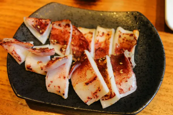 新鮮的澎湖中卷 特別的是他是有卵的中卷 我第一次吃到卵這個東西 (左邊的湯裡面的東西) 一開始我還怕很腥 但其實不會 咬下去真的可以吃到一顆顆卵呢 有點像果凍的口感 味道就是海鮮高湯的味道 滿特別的