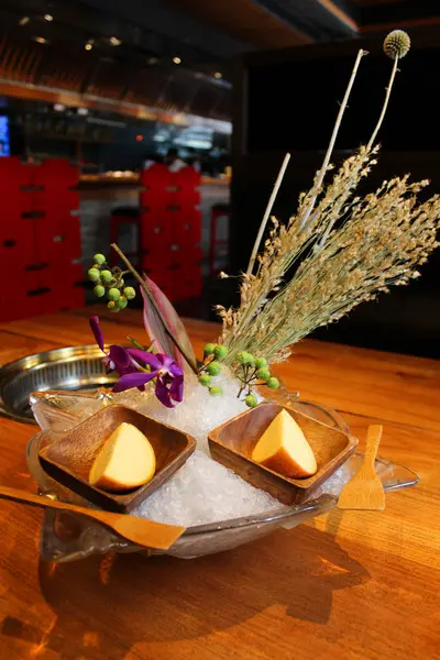 這個是我們公認今日最好吃的東西 切的薄薄的和牛上面塗滿山葵 厲害的是他們的山葵不會嗆辣 保留著淡淡的山葵香 跟肉汁在嘴裡合為一體 真的超讚的拉