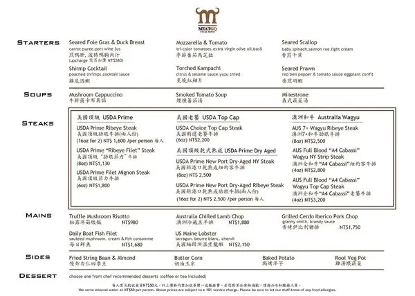 近幾年牛排胃口被養壞,在台北越吃越貴,比起牛排教父鄧有癸其他餐廳,忽然覺得 MeatGQ Steak 沒有想像中的貴,而且還有不少雙人套餐的選擇 (附餐皆有兩份)