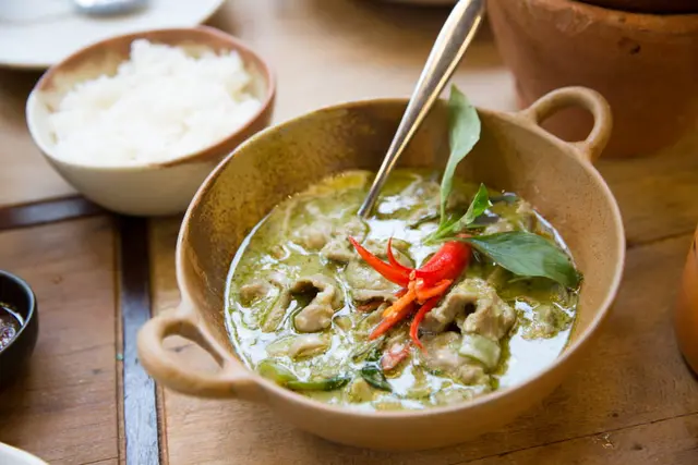 THAI.J綠咖哩辣度屬中辣,對我來說需要吃一口菜配一口水或飲料,但又欲罷不能停不了口,濃稠度也很足,又香又麻,最後還加點幾碗白飯把它全數吃乾抹淨