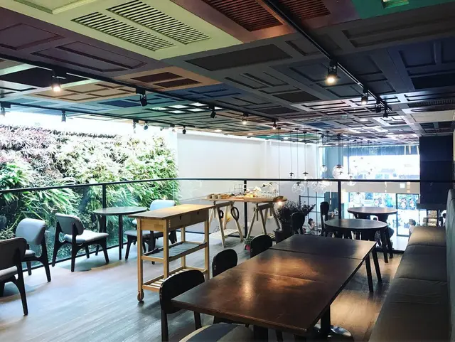 一走進去挑高的空間,整個覺得好寬敞,天花板和牆面的彩色木頭裝飾、垂吊的燈還有綠意的擺設,營造一種很有品味的感覺。空間很大,桌與桌的距離也蠻大的,不會跟隔壁桌很近,有沙發、也有包廂的房間,喜歡高腳椅座位的也有,看起來舒服又愜意。這裡採自助式點餐和餐具自取,所以也沒有收取服務費,餐點的價位大概在兩百左右,飲料則是一百多元。