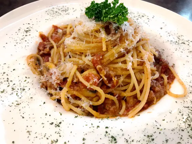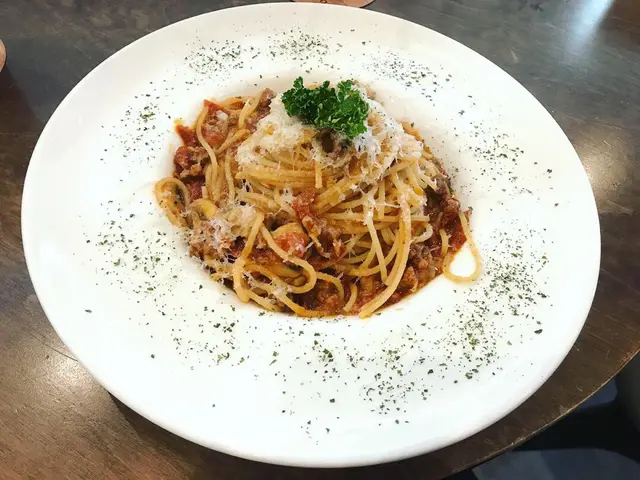 早午餐的選擇不多,結果我們三個人都不約而同想吃義大利麵,所以就點的不同口味的來吃吃看了。經典肉醬義大利麵一上桌就覺得那肉醬蠻多的,攪拌一下更顯得料多,而且肉醬是很紮實的那種一小塊的,不會是碎碎的只有醬而沒有口感的,味道也調的不錯,義大利麵感覺比一般的細一點,也沒有那麼的軟,還好煮得夠入味,但是可能醬料比較多,吃到最後會覺得稍鹹了一點。