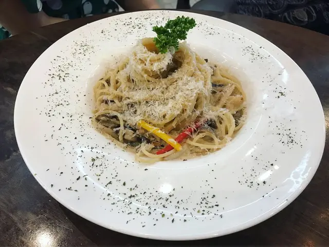 奶油蘑菇義大利麵大家都覺得還不錯,雖然是白醬但是不會奶味太重,一樣也是料給的不少,搭配麵條一起吃覺得好吃又不會膩,這三種比起來這份略勝一籌,喜歡吃白醬的人可以試試喔!