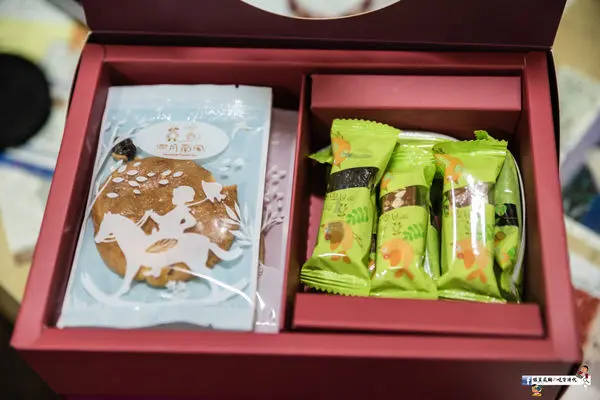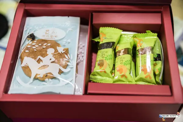 ▲打開禮盒分為上下兩層設計,上層手工餅乾、太妃糖和南棗核桃糕,下層是金桔酥。