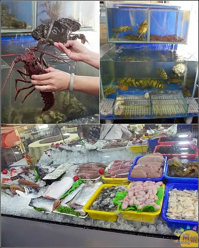 大祥的海鮮料理都很新鮮,店內有海鮮櫃一年四季都能吃到螃蟹、龍蝦,現點現撈新鮮看的見。