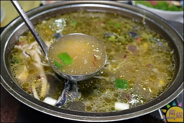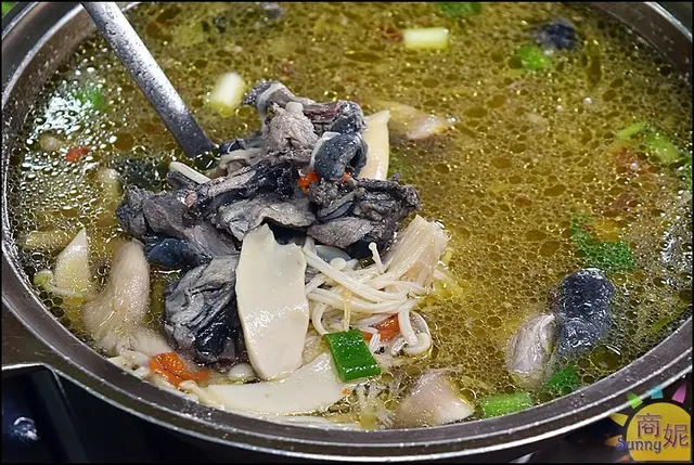 裡頭的雞肉選用烏骨雞,肉質軟嫩又帶點咬勁,不會糊糊爛爛的。烏骨雞加上大量的鮮菇以及蛤蜊一起熬煮雞湯,味道甘甜好喝,這個雞湯我們都很喜歡。