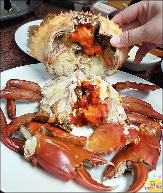 秋天正是吃螃蟹的季節,這隻沙公重達一斤以上,肉質肥美細緻,蟹膏也不少耶。