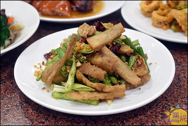 一般的肥腸都是切成圓圈狀,阿祥師特別切成長條再下鍋酥炸,吃起來口感比較香酥乾爽不油膩。配菜四季豆也很好吃,連蒜酥都好下飯,一口接一口停不下來越吃越涮嘴。