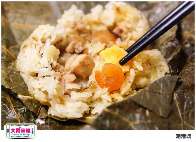 裡頭的糯米包著去骨雞腿肉、豬前腿肉、鹹蛋黃與蝦仁、