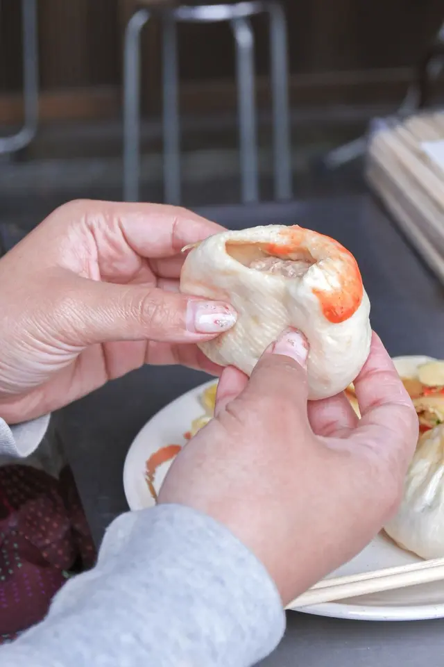 吃的時候建議跟吃小籠湯包一樣,先咬一小口再吸肉汁,最後再吃包子皮與肉。