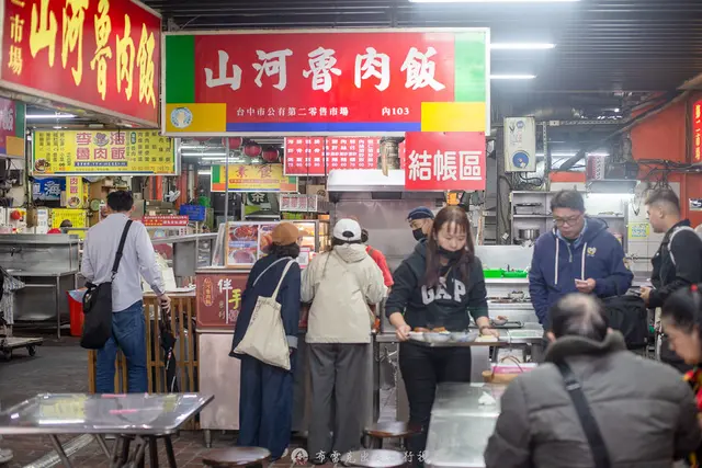 台中第二市場人氣排隊美食《山河魯肉飯》,只有白天才有賣的魯肉飯,在北部魯肉飯就是台中肉燥飯,而台中的滷肉飯則是北部爌肉飯,《山河魯肉飯》是最具有代表的台中魯肉飯,白天第二市場人潮最多的就是這一攤,《山河魯肉飯》跟李海滷肉飯算是最有人氣的台中二市場美食,兩家營業時間都錯開,所以才會說白天吃山河,晚上吃李海。