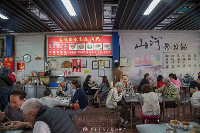 在第二市場通常都會說,白天吃《山河魯肉飯》夜裡吃李海魯肉飯,《山河魯肉飯》營業時間就是從早上五點半開始營業到下午三點,從早餐一直吃到中餐,相對著李海魯肉飯是從下午四點一直營業到凌晨三點,所以不管那個時間來到這,都能在台中第二市場吃上銷魂魯肉飯。