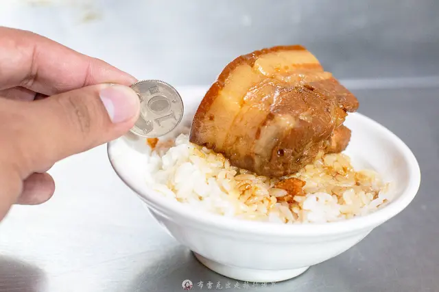 不得不說這《山河魯肉飯》三層肉看起來滷得相當透,肥瘦之間的分明,筷子一夾,立馬分離,要下去帶點油脂也是很好吃,再來魯汁淋在特選的霧峰香米,讓人一口接著一口,而且滷肉的厚度非常厚,比10元硬幣寬度還要寬,肥的部位吃起來整個就是化開=, 最嘴巴裡面超舒服的,瘦的部位吃起來很嫩,吃起來口感相當不錯。