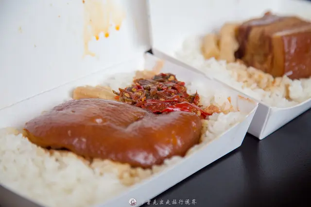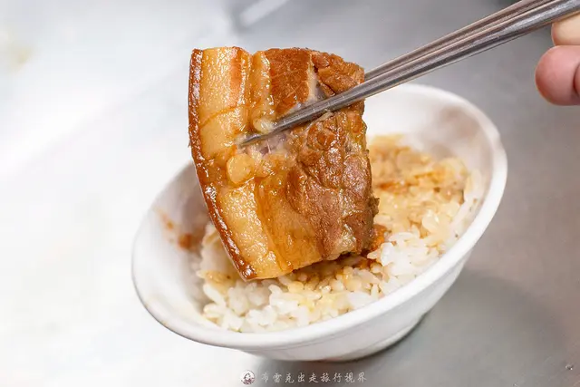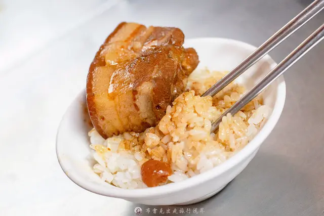 肥一點的魯肉飯帶皮多一些,其實就是以前的腿庫飯,咬下去整個滑嫩肥滋滋感,很邪惡卻很滿足,上方皮的部份咬下去整個都化開,超入味,鹹甘鹹甘,而且皮下面的油脂煮到都化開就只剩下膠質,豬肉的部份咬起來完全都不柴,也很鮮嫩好吃,加上店家特製的辣醬,超夠味的。