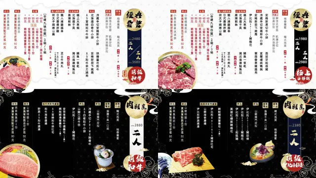 「山鯨燒肉」的套餐價格落在$1580~$2880之間,不吃牛的有經典套餐$1580精彩無牛套餐、肉割烹$2380頂級伊比利豬套餐這三種組合,套餐的選擇相當豐富,有兩人與三人的套餐,並且吃得到嚴選世界各地的優質肉品。