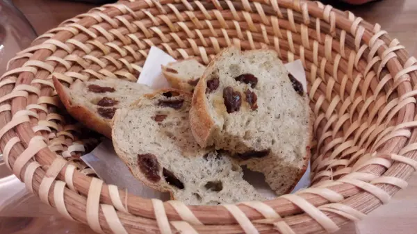 搭配著葡萄乾不會讓人覺得吃了會口渴~很棒的餐前麵包喔~