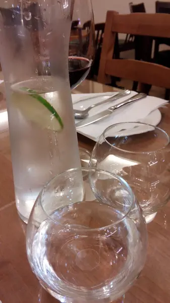 店員介紹了這回的體驗內容,建議我們乾式熟成牛排最佳食用是五分熟度,就依她囉~很基本簡單的餐具,但很乾淨…玻璃杯看的出來很透亮吧~
