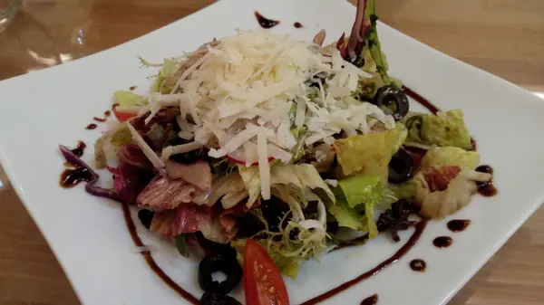 主廚沙拉 看到上頭滿滿厚實的 帕瑪森起司 很吸晴。整個沙拉份量上很足夠。