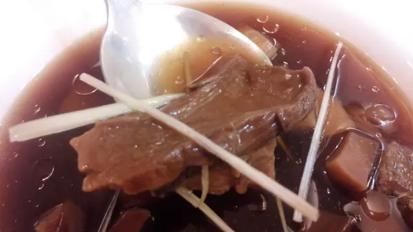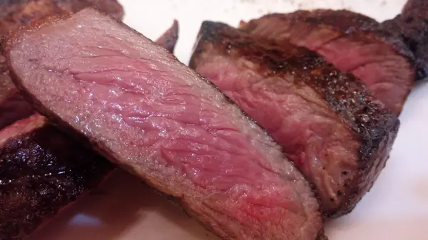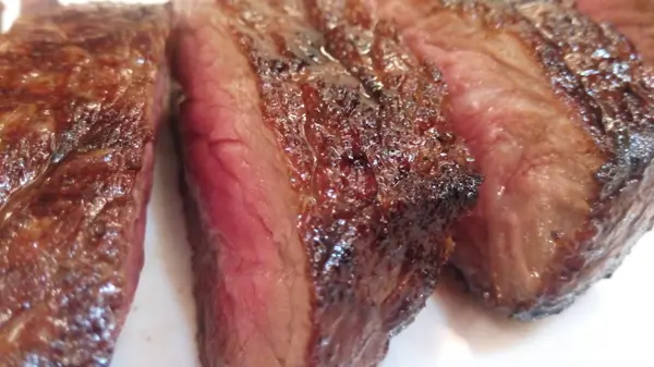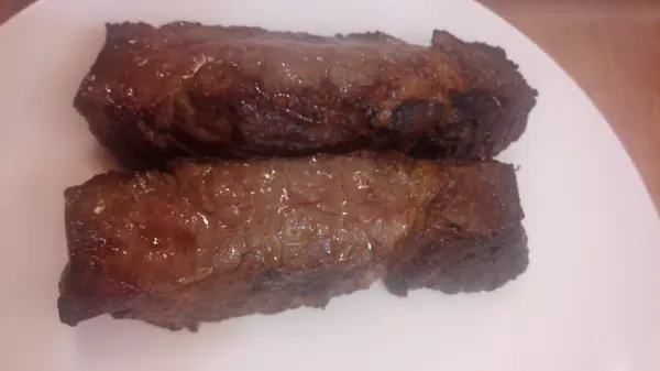 靠近聞,牛肉的肉香帶點烤後的焦香,肉汁是甜的沒有腥味,