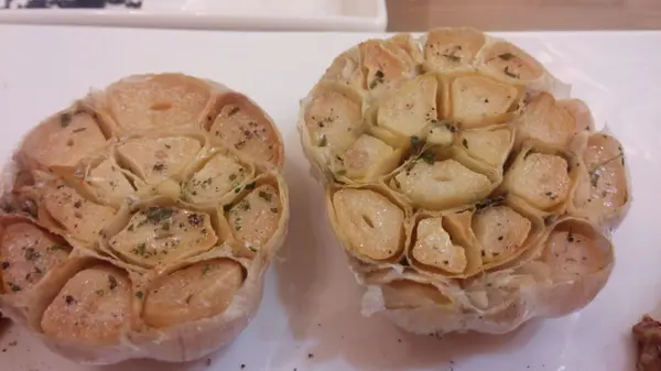 中上的烤蒜頭 很香 沒想到蒜頭也能用這樣的方式對切開來烤,單吃也好吃呀~