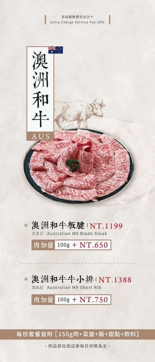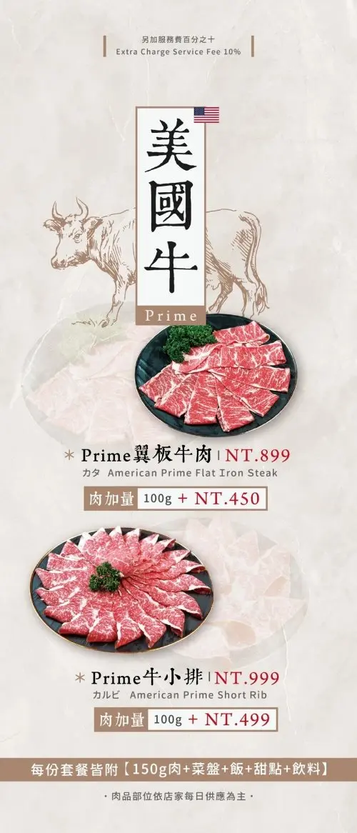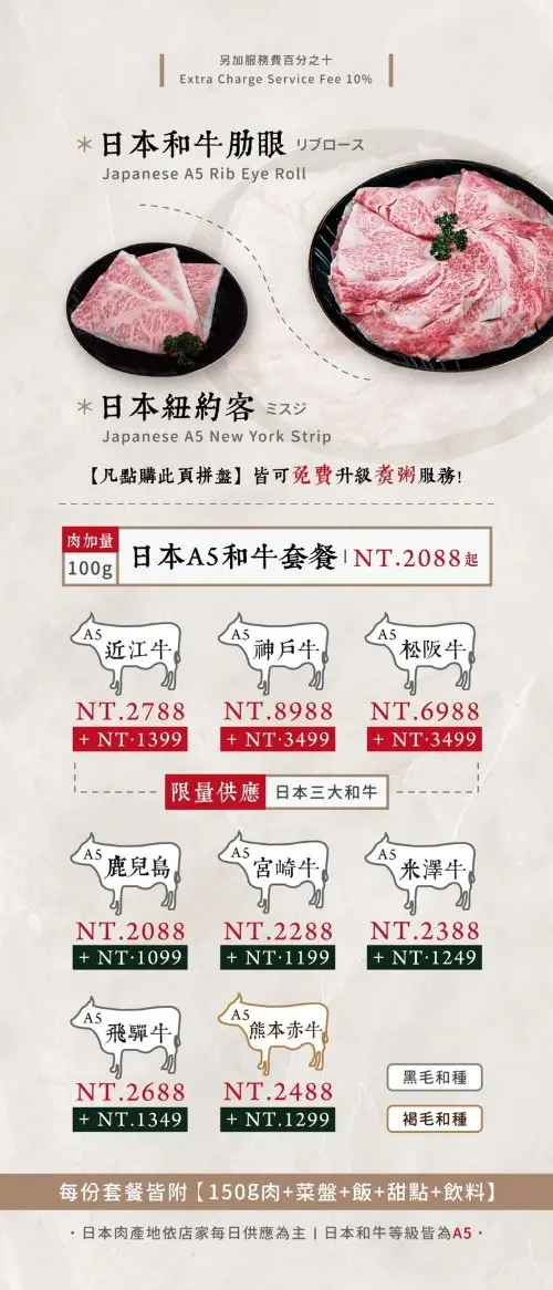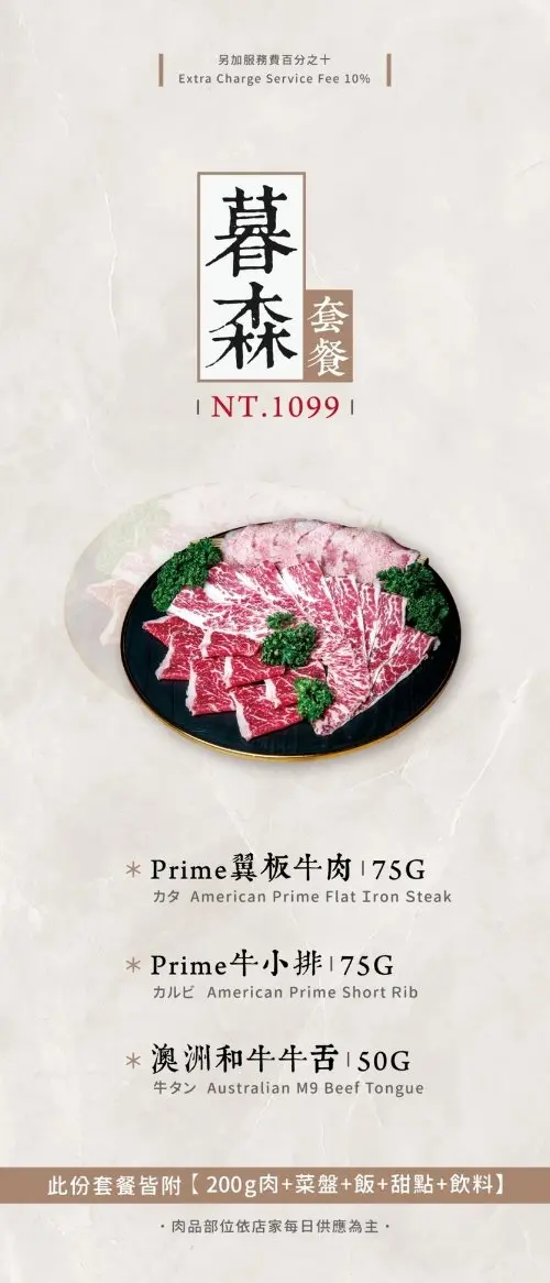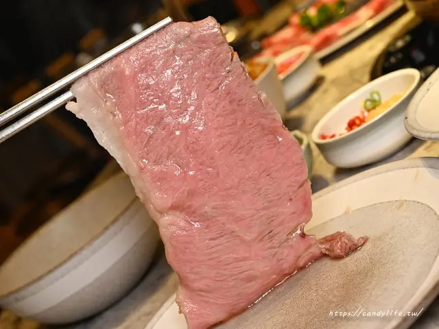 月映套餐的肉盤也太美了,裡頭包含美國Prime牛小排、A5日本紐約客及澳洲和牛牛舌,讓大家一次能品嚐到三種國家的肉品