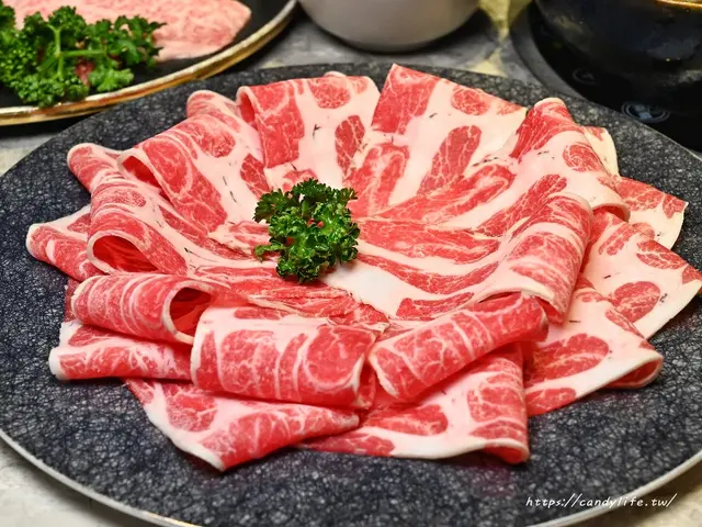 美國Prime牛小排有著美美的大理石紋油花,糖糖涮至五分熟左右,肉質還帶點粉嫩色澤,牛肉香氣濃郁,肉質鮮嫩又多汁