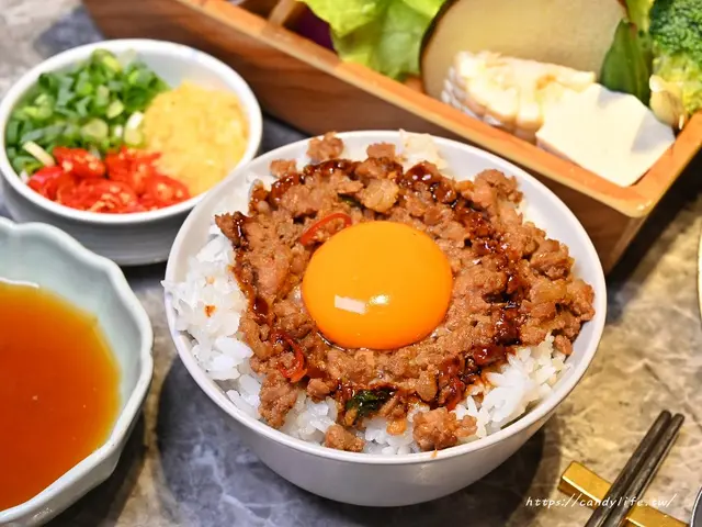 外面月見飯都是搭配豬油拌飯居多,沒想到月暮藏涮涮鍋的月見飯竟然是打拋豬,吃之前拌均勻,鹹香十足,搭配生蛋黃,多了滑嫩口感更加分
