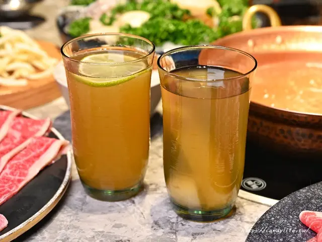 香檸青茶是檸檬汁搭配青茶,喝起來清爽又解膩,另一杯甘蔗馬蹄水是採用了甘蔗、紅蘿蔔及荸薺下去熬煮,喝起來沒有胡蘿蔔的味道,帶有甘蔗的清甜