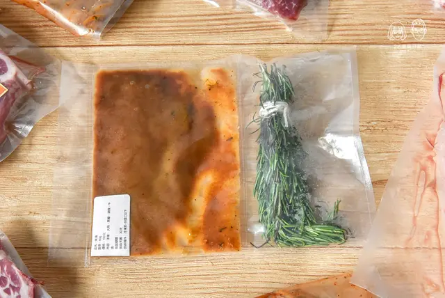 「中秋超豪華肉品禮盒」除了肉品,還提供了店家特製的烤油及新鮮香草束,烤油有使用牛油製作,因此不吃牛的人需要注意一下,使用方式很簡單,將醬汁倒進碗裡,使用新鮮香草束沾取並刷在肉塊上,或是在煎烤時涮上,而這個醬汁搭配肉品有增加香氣的作用,但又不會蓋過肉品的原始風味,細細品嚐還能感受到淡淡的醬香。