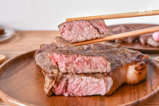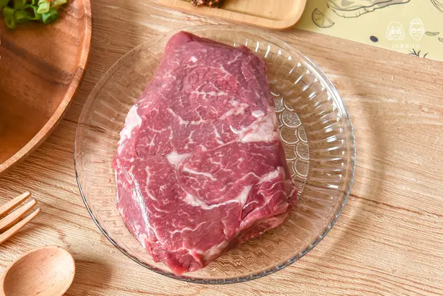 厚度十足的「肋眼牛排」的份量也不少,「肋眼牛排」需先在鍋子裡下點食用油再將牛排兩面各煎45秒,接著放在鍋裡靜置3分鐘,再進入180度烤箱烤3分鐘即可,這樣的熟度大概是5分熟左右,若覺得太生,可以用烤箱多烤一下。