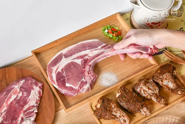選用台灣雲林究好豬的「戰斧豬」份量也沒在客氣,15oz的「戰斧豬」比男生手掌還要大!料理方式比牛排簡單得多,下點油將兩面各煎2分鐘,再於鍋內靜置五分鐘即可享用,不過肉的厚度比較厚,建議先用刀子切切看,再決定是否繼續煎烤。