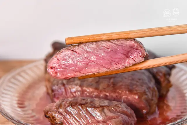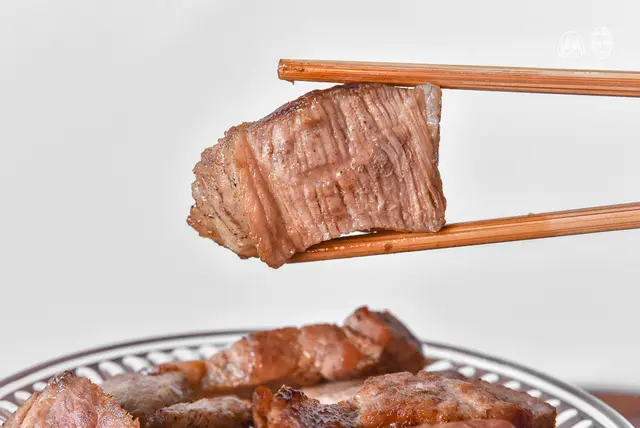中心保有粉嫩色澤的牛排,外表煎到金黃色的狀態有著外酥內扎實的豐富口感,搭配特製烤油有著多層次的香氣,但一樣感受得到牛肉的鮮美,簡單沾點玫瑰鹽或是單吃就很讚,而肉質咀嚼起來較扎實,卻保有多汁的口感,若喜歡帶點咀嚼感的牛肉,可以試試「丁骨牛排」。