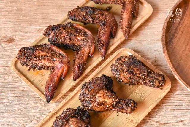 四隻雞翅、四隻小雞腿是兩包的份量。